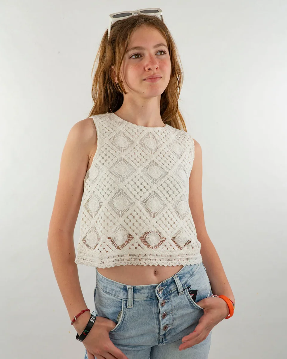 Top in cotone effetto pizzo